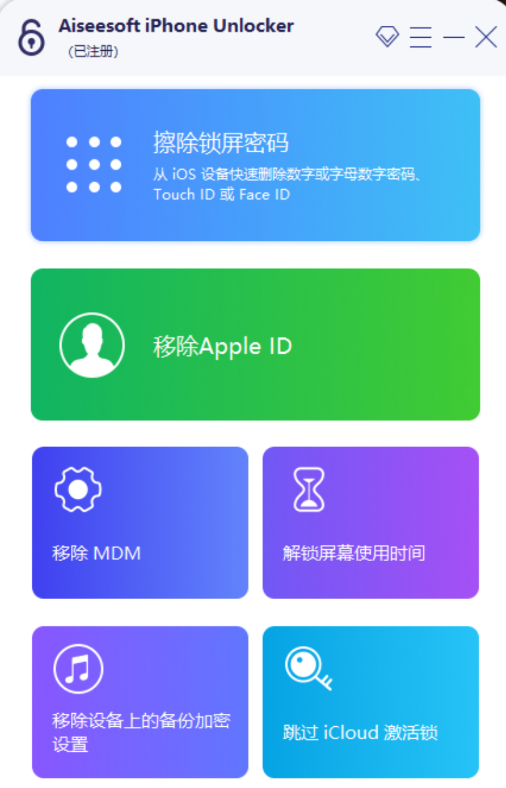 Aiseesoft iPhone Unlocker是一款功能强大且易于使用的专业iOS设备解锁工具,可以帮助用户快速解除iPhone、iPad或iPod Touch的各种锁定状态。它可以解锁屏幕密码、Touch ID、Face ID和iCloud账户,让用户重新获得对设备的完全控制。该工具兼容多种iOS设备,包括最新的iPhone 12系列和以前的型号。最重要的是,在解锁过程中,它能够保护设备中的数据,避免数据丢失或损坏。无论是忘记屏幕密码、Touch ID或Face ID无法使用,还是设备因多次输入错误密码而被禁用,甚至设备被锁定到iCloud账户上,Aiseesoft iPhone Unlocker都能提供解决方案。